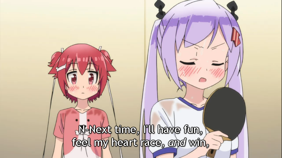 Ultimately, she lost the match, and her top ranking in the club. However, at that point, it did not really matter if she won or lost. She had found something to enjoy about table tennis that did not rely on what others thought of her. Of course, she still wanted to win and become the best, but now she would have fun doing so, from improving her forehand smash to playing more games against strong opponents like Koyori.