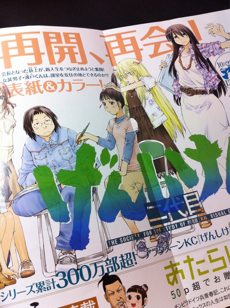 News: The popular manga about otaku, Genshiken, will be continued as Genshiken II in Japan in Kondasha’s Monthly Afternoon magazine. The sequel manga will feature Ogiue, now the Genshiken president, as the main character of the college club. New characters will join in, including a cross-dressing boy named Hato.