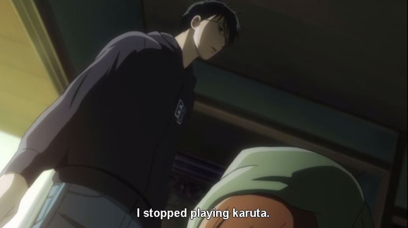 The story starts with Chihaya knowing what her goal is already, to make a Karuta club at her school. But we slowly find out that neither of her two friends (Taichi and Arata) want to play it anymore like they did three years ago. She views the game as something that held them together, no matter how far they were away. We soon get a detailed flashback to explain how we got here and why Chihaya is feeling regret over the loss of her friends and the fact they no longer play Karuta together.