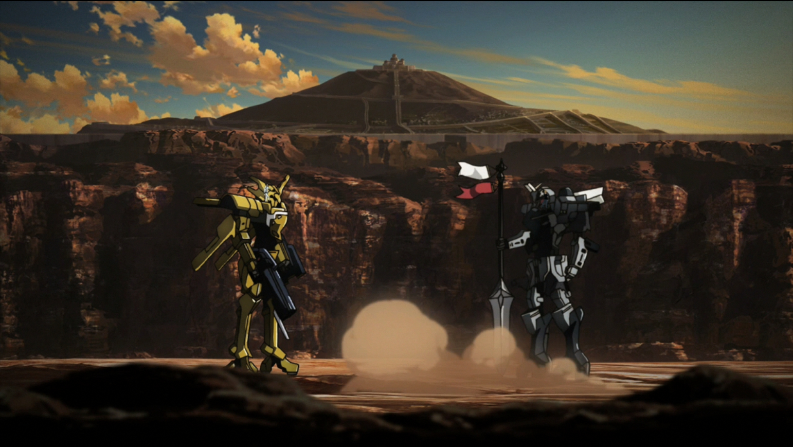 Zess’ units once again advance on the Kingdom of Krisna’s capital city. During this initial assault on the outer defenses, we get a brief glimpse at the relationship Zess has with his brother, Loquis, who is the Secretary of War for the Commonwealth Athens. After this quick intermission, Rygart meets with Zess to try and convince him to stop fighting. Zess demands that Rygart go tell King Hodr to surrender. Zess is completely unaware that in such a situation, the royal family of Krisna will be executed. During this discussion, one of Zess’ soldiers spots Krisna forces moving to attack. Zess quickly puts Rygart at gun point and after a count down, starts shooting. Rygart flees and General Baldr’s forces come out to assist Rygart and repel the attack. Rygart hides in the shadow of a cliff until he is spotted by another one of Zess’ soldiers, Lee, who attacks him. Our unwilling combatantgrabs a giant sword and a spear to protect himself and his unarmed unit from the hail of bullets that Lee unleashes. The two battle until help arrives for Rygart from First Officer Dan, who is part of General Baldr’s army. Dan immobilizes Lee’s unit quickly. He the keeps showering her unit with gun fire. Rygart steps in to stop him. He doesn’t see the point in killing Lee, but during his debate with Dan, Lee shoots and kills Dan. Rygart hurls his spear at Lee’s unit in order to remove the gun. Then Rygart witnesses Lee commit suicide. The battle is finished, but Rygart still bears the burden of Dan’s death. He goes to Dan’s grave and meets Dan’s pregnant wife. After conversing with General Baldr, Rygart decides to leave. He can’t bear the weight of war and death. He heads out of the city after saying good bye to Hodr, but then he remembers what his dad told him: