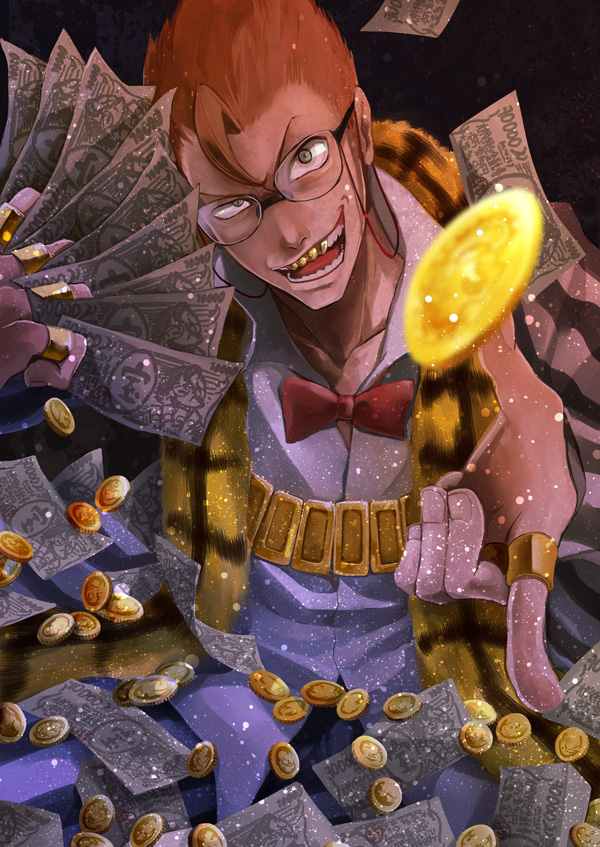 In the case of Kill la Kill, Takarada’s power did not come from the money he possessed, but from the love of money that others possessed. In purchasing weapons, he was not buying weapons with money, but with the willingness of the weapon dealers to value money at the same price as the weapons they were selling. In hiring soldiers (or townspeople in this case), his money was not motivating them, but the townspeople’s love of the money provided was motivating them.