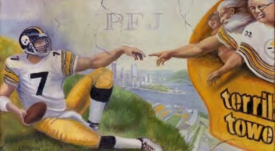 Yet this is nothing new with Christianity. The same famous “Creation of Adam” painting by Michaelangelo which was parodied by some “Twitch Plays Pokémon” Red Bubble entrepreneurs has had the same treatment thousands of times, most memorably for me by Pittsburgh Steelers fans who replaced the figures with Art Rooney Sr. and Ben Roethlisberger (who fell from grace faster than Adam). The Lord’s Prayer, a source of some very good Christian theology, was of course used by the Helix Fossil group, as it has been by so many others (and not surprisingly, even Steelers fans)2. And many other Biblical references were turned into “Helix theology” – but again, following the lead of others.