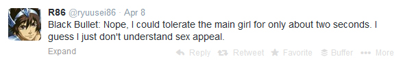 A boy haunted by guilt from an event that led to the death of his childhood friend, Gokukoku no Brynhildr focuses on the mystery of a similar-looking girl, with her own strange past, coming into his life years later. I can see this moody and dark series becoming something compelling and interesting, but it’s not up my alley. As I’m want to do when I know I won’t be completing the series, I didn’t even finish the first episode.
