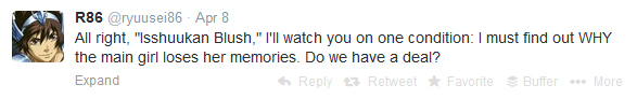 With a storyline similar to 50 First Dates, Isshuukan Friends looks like it’s going to be a very emotional series. It’s the only one I was really looking forward to this semester, and based on the first episode, I don’t expect to be disappointed. I really enjoyed the art style, the characters, and the way the series is already hitting the right emotional notes. I can’t wait to see episode two!