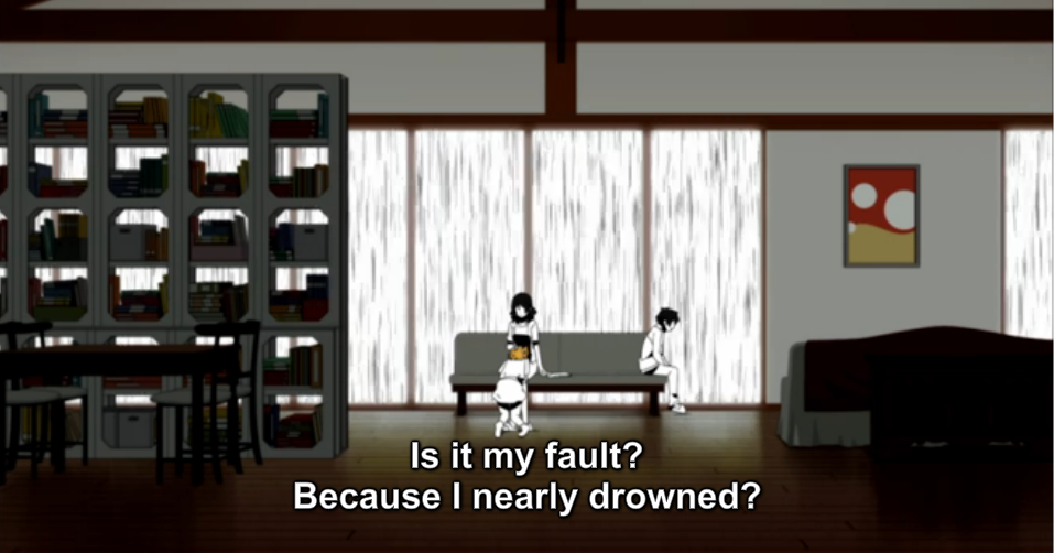 This was more or less what I thought it would be. It’s not a bad first episode, but it isn’t ground-breaking either. The animation is very stylistic to SHAFT, which I should have expected but didn’t. Although it’s different from the manga art and the song PVs, I do think it suits the story. The voices are mostly pretty good. Ene’s voice is driving me crazy, but it’s supposed to be irritating, so I can’t really fault them for that choice. It kind of hurts to listen to. I think this episode made for a solid start.