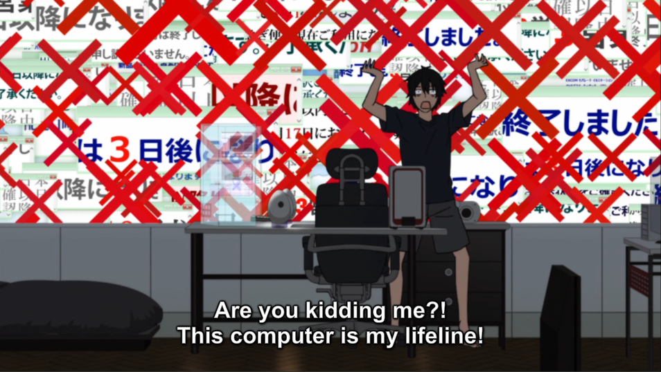 One day, everything goes downhill when Shintaro spills some soda on his keyboard, utterly destroying it, and is forced to leave his home in the first time in two years.