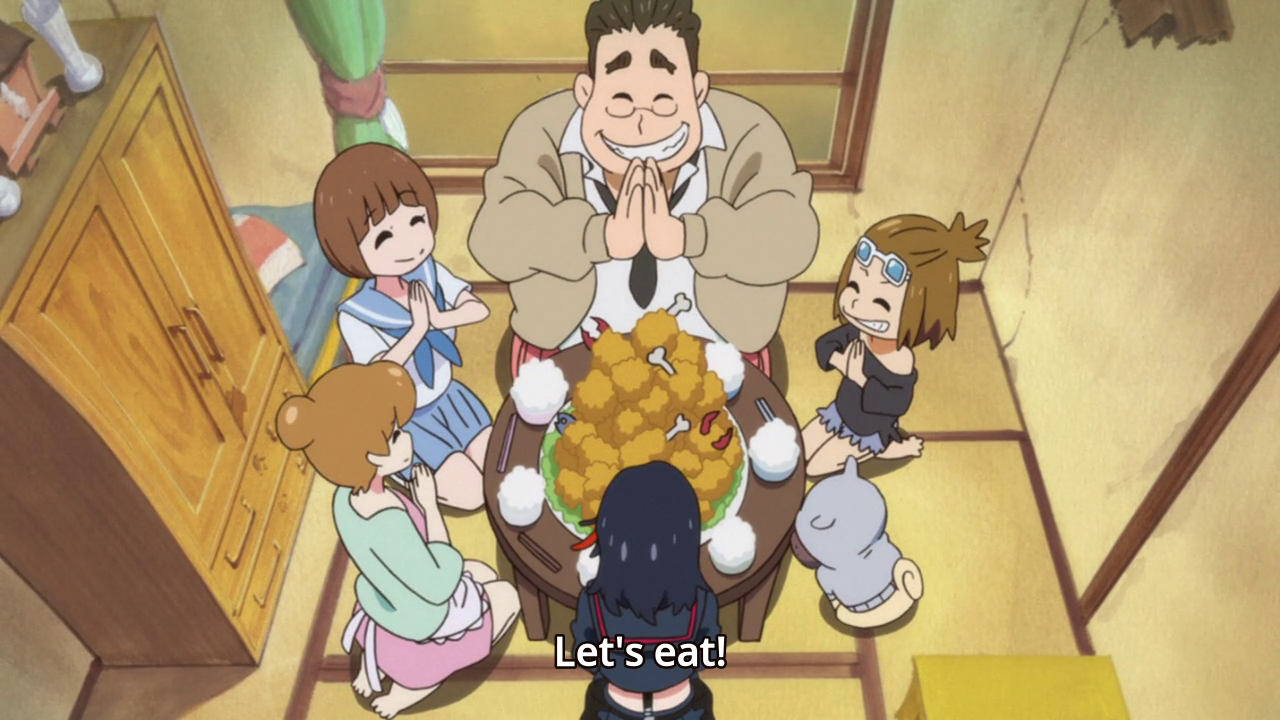 Yet, episode seven reveals the one thing which can break the intimacy of their family: wealth. When Ragyo and Mako advance through the ranks through the success of their Fight Club, Mako’s family similarly advances in status. This results in their losing interest in each other and caring more for what money can buy them. This places pleasurable goods above persons, which should be esteemed as man’s greatest joys—whether one refers to human persons or the Persons of the Holy Trinity. Actually, when one inordinately luxuriates, they love a person, but that person is themselves. This exacerbates the selfishness we inherited from our First Parents.