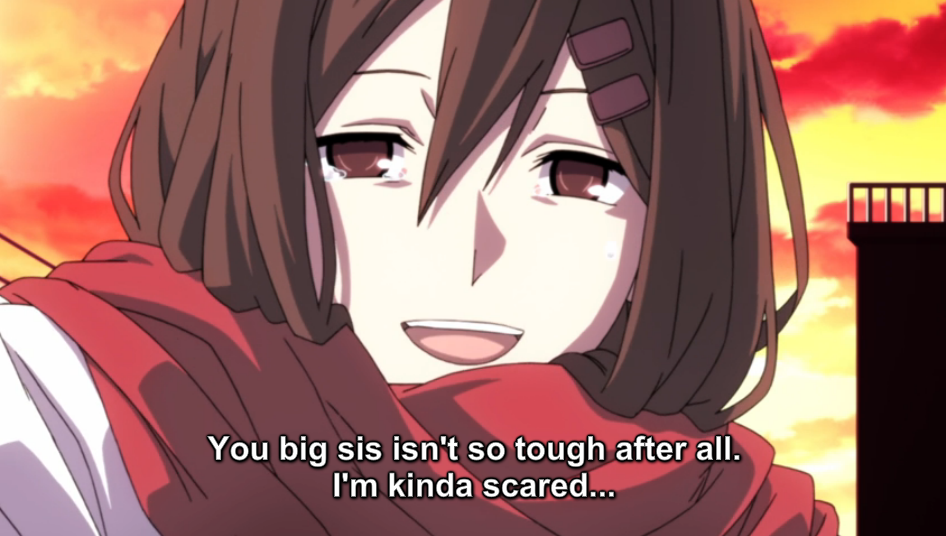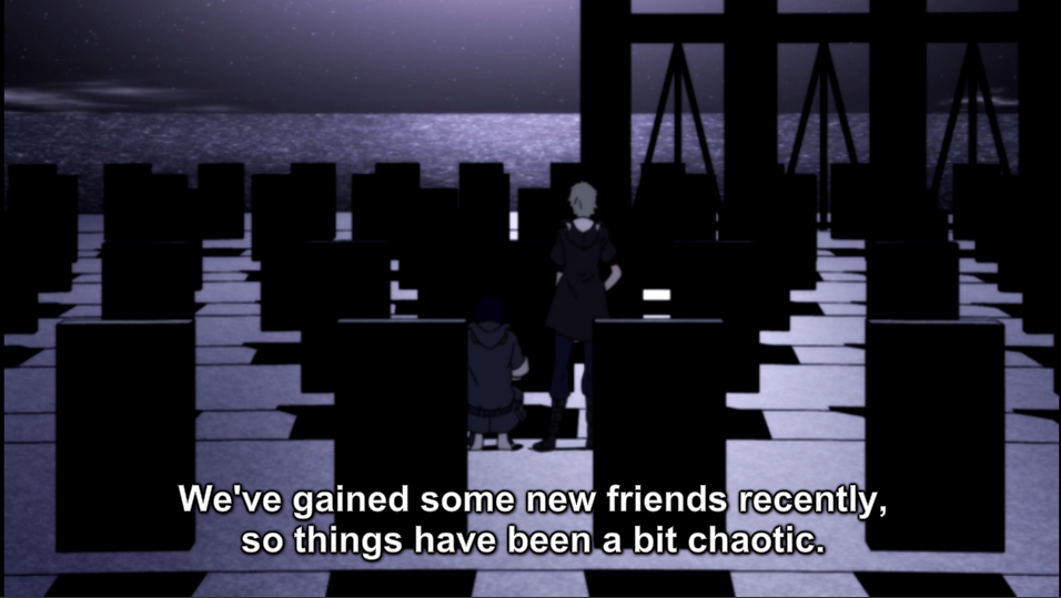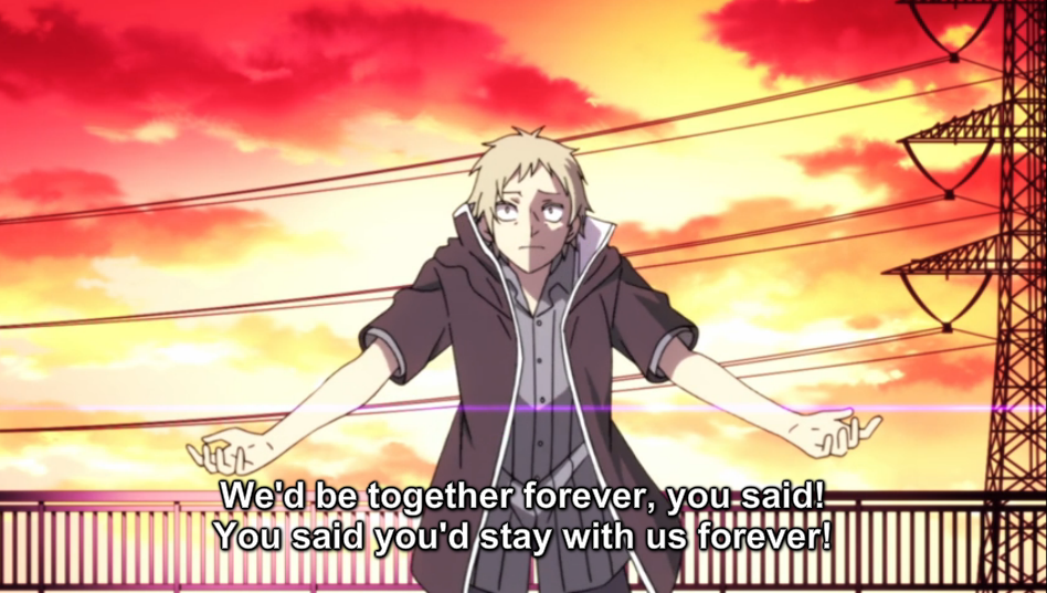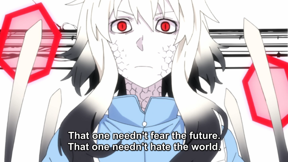 Even though this episode confused me to death and I had to get a friend to explain everything to me, I absolutely loved it. The interaction between the Mekakushi-Dan was very fun, the climax was great, and although it’s hard to understand, pretty much everything tied together. Ayano came back, which surprised everyone, as anyone in the KagePro fandom would have told you that Ayano’s death was definitely permanent. I’m glad that, if nothing else, she was able to live in this continuity. Some were unhappy because they felt this destroyed the Kagerou Project’s strong themes about moving on and overcoming grief. But I believe the same themes were conveyed, they just became less about Shintaro moving on from Ayano’s death and more about Marry overcoming her fear of the future.