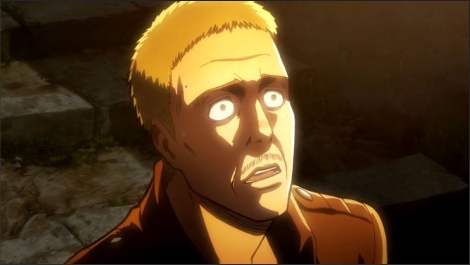 Maybe that’s why I felt more sympathy and compassion for Hannes and his initial actions in Attack on Titan than disgust. At the time of the first attack, Hannes lived a life of complacency. He was a soldier, a defender of the wall, and a committed fighter against the titans. A complacent fighter, but committed nonetheless, if that makes sense. Clearly he believed in the fight against the titans as evidenced by his intention to go after them to “ settle a score.” However, when finally in the fray, he found himself…unprepared.