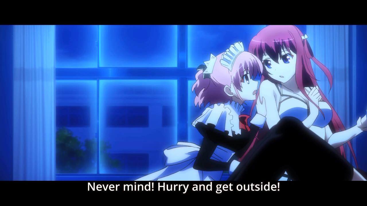 Sachi attends class by day and sneaks around at night, noting special places in the building before the day of the test. She is also making some chemicals in her room, which ends up being bombs. Note here that showing her making bombs in episode 1 was apparently a flashforward which made no sense, but I refrained from discussing that. Sachi sets the bombs in her planned places, and just as she sets the timers, all the other girls meet up in the classroom at Yuuji’s request. She then accidentally speeds up the bombs and tries to get everyone out. Michiru just so happens to be kicking a desk with a bomb inside. Sachi panics and screams at them to leave but the counter still reaches 0…