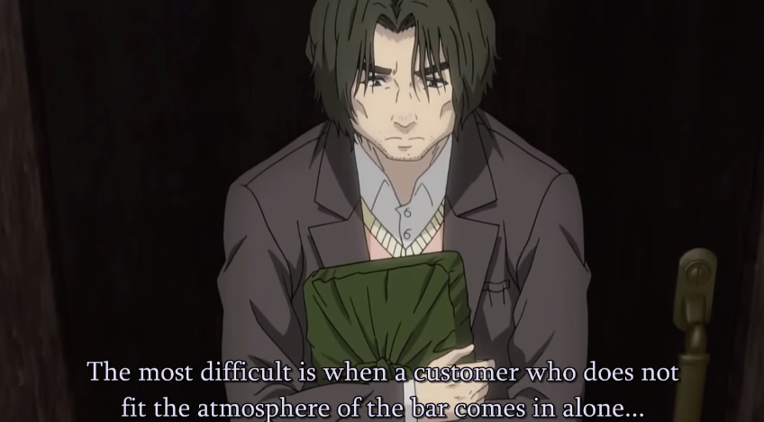 In the end, the professor realizes that he has come to a place where he does not belong. His academic obsessions and other tendencies have ostracized him from the very object of his recently-discovered hope and affection. However, Ryuu does something unexpected a bartender: he accepts him to come as he is. The professor appreciates this, of course, but it does not change his obnoxious countenance.
