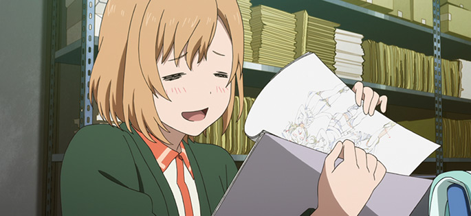 The thing that jumps out most in Shirobako – in the first few episodes at least – is the busyness and complexity of creating an anime series. Even with all her organizational aids, Miyamori can’t keep up with the dozens of items on her never-ending list of things to do. She can’t find time to eat, sleep, or stay healthy. Except for a day off here or there, it’s literally non-stop.