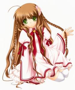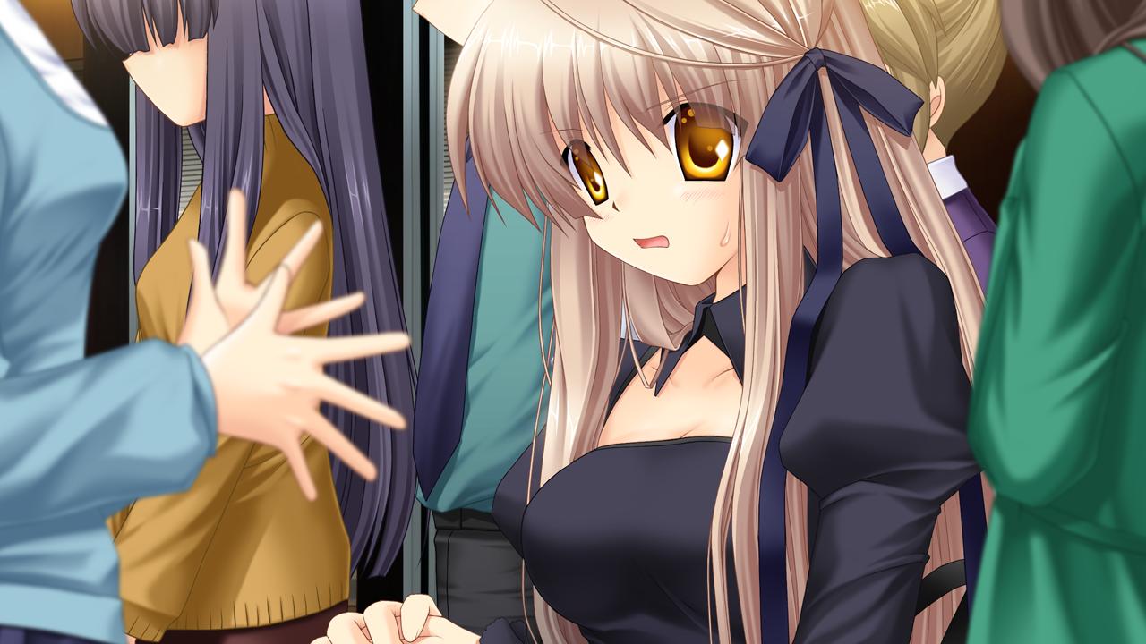 Unlike other routes, Lucia’s route branches earlier on as Kotarou learns about her past. Her apparent obsession with cleanliness is not because she considers others dirty but because she considers herself to be too dirty – to the extreme that if she even touches something with her bare hands, it will die of toxicity. Shortly after, Kotarou investigates an occult rumor about Haruka, who is similar to Lucia’s fears of draining the life of anything she touches. Lucia also joins Kotarous, and strange things begin to happen around them such as a blank sheet of paper being printed with eerie words and lights being broken without warning.