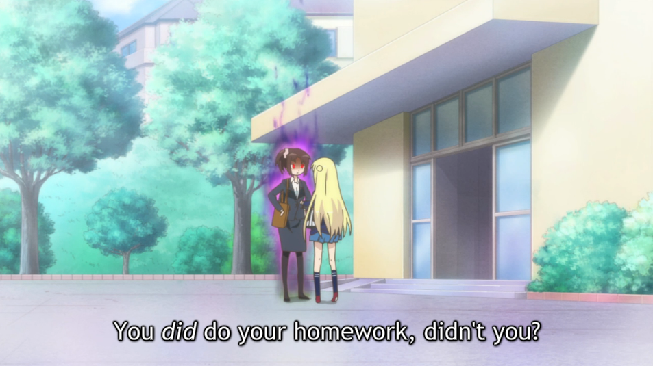 Kiniro Mosaic, a.k.a. KINMOZA, is a cute-girls-doing-cute-things show with an ongoing theme of overcoming communication barriers, and that theme is stronger than ever in the currently-airing second season. In addition to the obvious example of the language and cultural barriers between the Japanese and British cast, there’s also the barrier between teacher and student, and plenty of subtler barriers that keep various characters from clearly expressing their thoughts to each other.