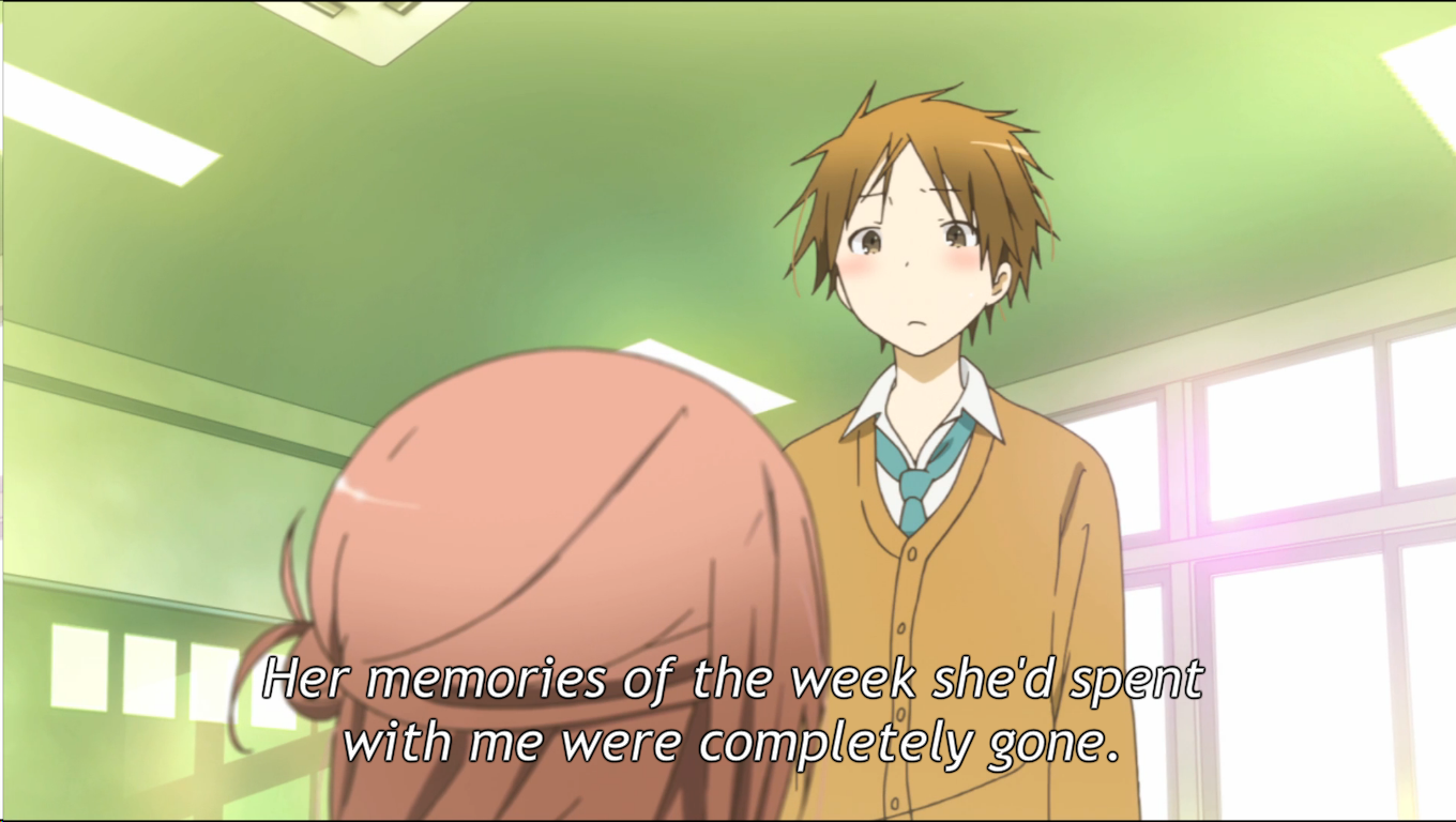 Not being able to remember something or someone precious to us can be irritating since our memories are very important to us. It got me thinking about the meaning of our thoughts, experiences and consciousness. Whenever we as people go to an event, experience something new or spend time with friends the purpose is to create a memory. Without them, pictures and videos would be worthless and so would many of the exciting places we go to. If you couldn’t recall what happened after it’s over, why even go? When we see Kaori unable to remember the places she went with Hase-kun, it makes him sad and frustrated since it seems like it was all a waste.