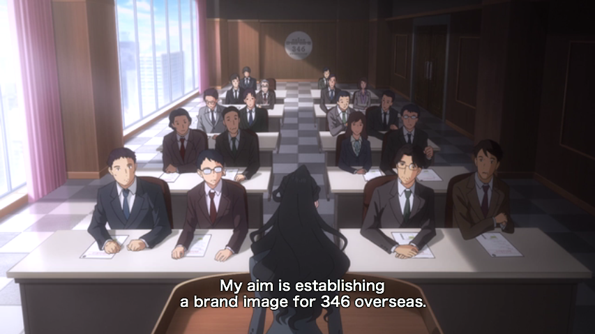 Whereas Mishiro is concerned with the expansion of 346 Productions, Kaede instead wants to foster strong relationships with her existing fans. When the former tried to impose her goals on the entire company, the latter’s defiance started to inspire the rest of the company to find their own voice to speak up for their own goals. Indeed, at the end of the episode, the Producer presents his own alternate plan to Mishiro, with the hopes of preserving the dreams and smiles of his Cinderella Girls. Whether Mishiro will ultimately be convinced to let the girls pursue their own goals remains to be seen, but I am definitely looking forward to seeing how these girls face up to the new challenges in front of them.