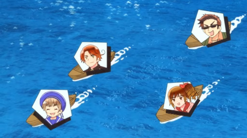 Hetalia is one of those anime that I think about in daily life, especially when international affairs pop up in class. The way countries are personified and satirized never ceases to entertain me, even after over 100 mini-episodes. The latest round, The World Twinkle, isn’t quite as striking as past seasons, though. Maybe the magic is finally starting to wear off. Maybe I just miss the old EDs. I’m not sure. Still, I enjoy the screentime that Sealand is getting—well, mostly. Hetalia: Axis Powers introduced me to this micronation, and it’s a fun piece of trivia to whip out: “Hey, did you know someone founded a country on an abandoned naval base?” This season, I’ve enjoyed learning about other micronations, too, as Sealand marches around, determined to gather friends (he’s pictured above with three of them). But his cuteness is starting to lose its charm. He really doesn’t have the same rich history that adds to other countries’ arcs, and I think that’s one reason this season is falling a little flat for me.