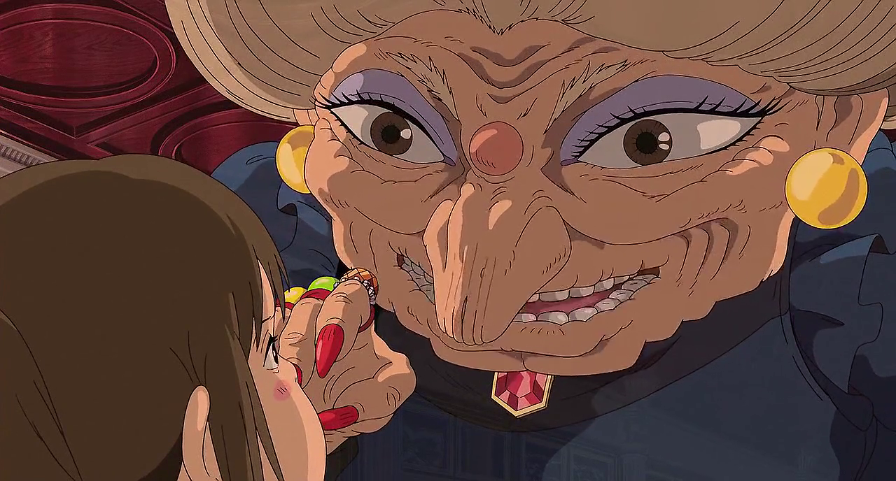 In Spirited Away, Chihiro, our heroine, signs away her name; from henceforth, she’s known in the bathhouse as Sen. As soon as she becomes “Sen,” Chihiro comes under a spell that threatens to make her forget everything she’s known; the connection to her name is vital in helping her remember. Yubaba knows this, which is why she takes the name from her (and earlier, from Haku).