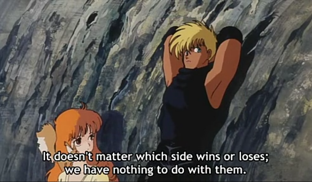 I have written an article on my eponymous blog where I touched briefly on the folly of the war between Paro and Itha in Windaria. I noted that the film was an anti-war film which failed to create a real argument against war. As I understand it, people who label themselves anti-war claim that war is always wrong, regardless of the justice of a cause. In Windaria, both the offensive side and defenders are wrong to wage war. If the anime had really wished to carry its point against war itself, it ought to have made this war perfectly just and still shown why all war is wrong. The majority, who believe war may justified in dire circumstances, would not be shaken in their beliefs by this film, as tragic as it is.
