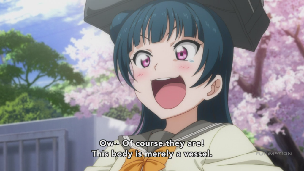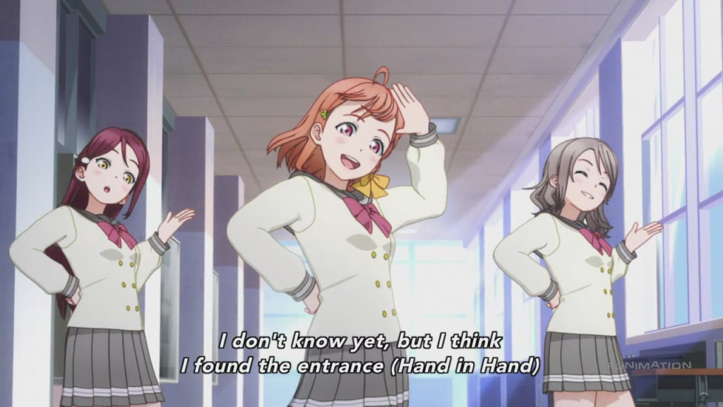 Of course, the other appeal of school idols is that, being separated from the professional world also means being separated from all of the uglier aspects of said world. This is why, as I mentioned earlier, compared to other idol franchises, Love Live is more about having fun than anything else. So far, it looks like Sunshine will follow in the footsteps of the original as far as having fun goes. There probably will be drama later, just like in the original, but hopefully it will never overtake the show’s sense of fun.