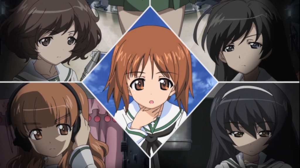 I avoided Girls Und Panzer for a long time, because “panzer” sounds a lot like “pansu,” which, well… I’m sorry, more innocent fans, but I won’t explain further. Thankfully, my first reaction to the title was completely off base: “und Panzer” isn’t a Japanese (or even Engrish) phrase, and it has to do with tanks, not undergarments. Girls Und Panzer is about a group of girls who take a class on sensha-do, or the art of armored tanks (translated on Crunchyroll as Tankery). It’s ridiculous, and you have to suspend disbelief frequently, but it’s relatively harmless.