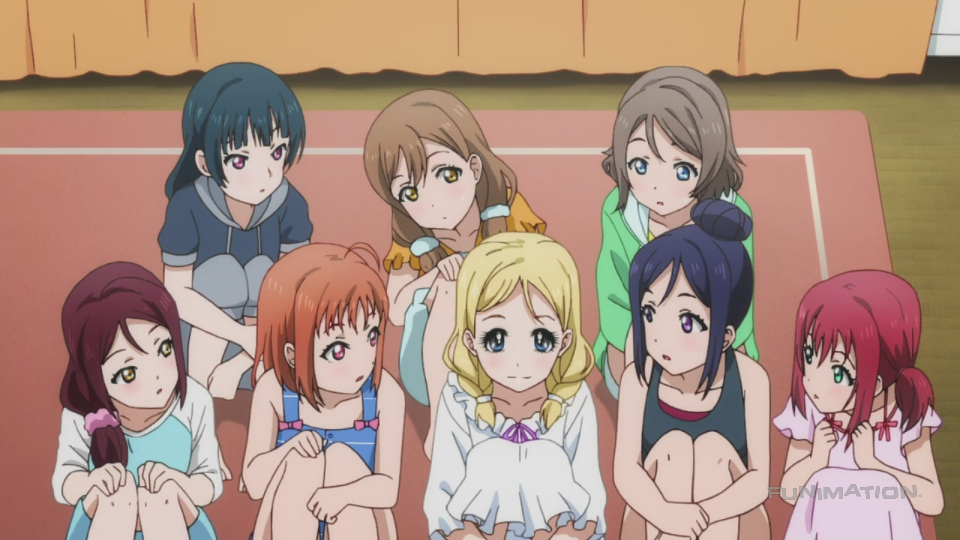 After the heavy drama of the last two episodes, now would be a good time for a breather. Forget about all that heavy plot stuff, put everyone in swimsuits and have them frolic about on the beach. Indeed, episode 10 of Love Live! Sunshine!! is for the most part a fun episode: a chance for all nine of the group members to goof off and show their personalities. As such, while it was an enjoyable episode by all means, it did not provide a whole lot for me to blog in-depth about, so expect a shorter post this week.