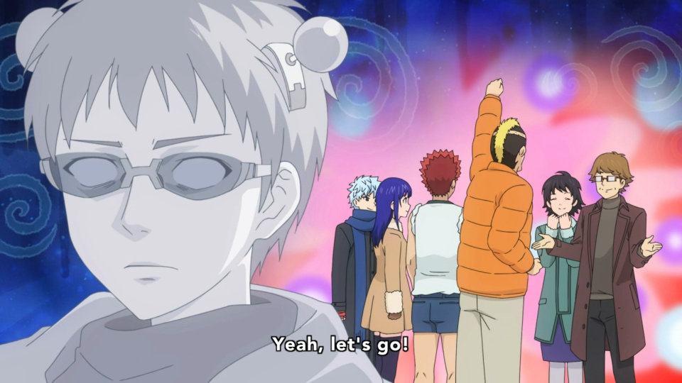And so we end the episode where we end every episode, which is also where we begin every episode: a longsuffering Kusuo hoping in vain to enjoy his favorite coffee gelatin snack in peace. And I’m not sure about anyone else, but I for one will continue to look forward to each episode, and relish along with Kusuo-kun every precious second of quiet and rest that he can manage to find. For if Saiki Kusuo no Psi-nan has taught me one thing, it is this: While every one of us has on occasion wished for superhuman powers, they almost certainly wouldn’t be all we hoped for even if we could have them.