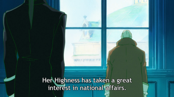 This may be my favourite episode so far, and I also think it’s one of the better-done flashback episodes I’ve seen to date. Everything was explained quite nicely, with just a bit of mystery remaining. It was also grounded, rather than relying solely on vague nostalgia to carry it through. I’m still aghast that the Privy council would rather have ignorant, selfish royalty than someone who wants to make things better. I’m also a little furious with the King for allowing it, though there are two possibilities: either the King is a puppet, willing to forfeit his relationship with his daughter for the sake of stability (and if you ask me, stability that must be maintained like this is only a farce anyways), or he had hope that someday the situation would change, and Schnee would be able to rejoin their family. Now, what will Jean’s next move be now that he knows all this? Only the next episode can answer that.