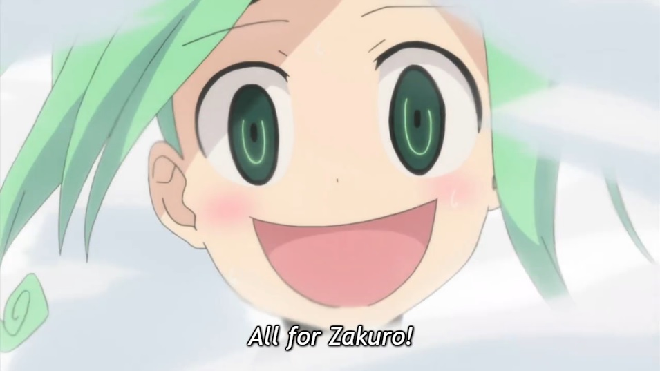 At first, Kururi is worried that Zakuro would be upset at her for losing, but then Zakuro just expresses how happy she is to have seen Kururi play her style of table tennis at her best. At that point, Kururi finally realizes that Zakuro’s friendship did not require her to “pay” her anything. Quite simply, this is a simple yet emotionally resonant example of grace, shown through girls playing ping pong together.