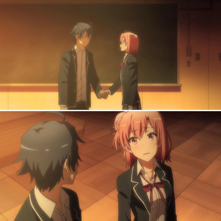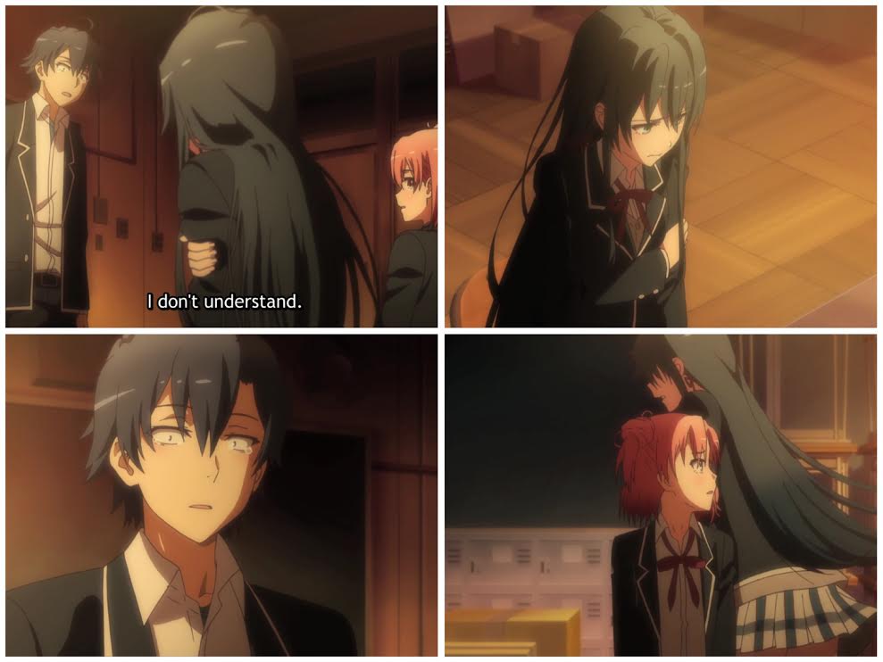 So, all hugs and tears of joy, right? Nope, not quite. Instead, we get a confused Yukino running from the room, and a dejected Hikki almost giving up.