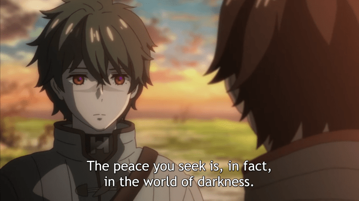 Yuri is poisoned by the darkness that is growing throughout the land, and he is having a hard time keeping his mind straight. He sees a dark persona of himself, which tries to convince him that there’s no way the team can win. Of course, as the hero he is, he refuses and gives a brave speech on how hope and light will overcome. It’s a good rebuttal, but he soon starts to crack and break down. In most anime, this is the part where the main character defeats the bad guy and the sun shines upon the battle as it ends.