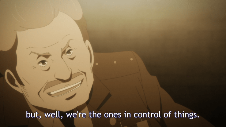When Kino visits the town, she hears a very different tale from an old man, who not only advances a narrative that memorializes the two as heroes of justice, rather than travelers who freed themselves and took money from the nation as payment for their crimes, but also gives the authoritarian government a better image by stating that they saw the error in their ways and reformed, rather than admitting they were embarrassed and defeated. The grandfather feels no shame in advancing these lies, built upon a revolution that occurred during his lifetime and which, it’s indicated, he had first hand knowledge of. He lies to Kino and Hermes. He lies to his granddaughter.