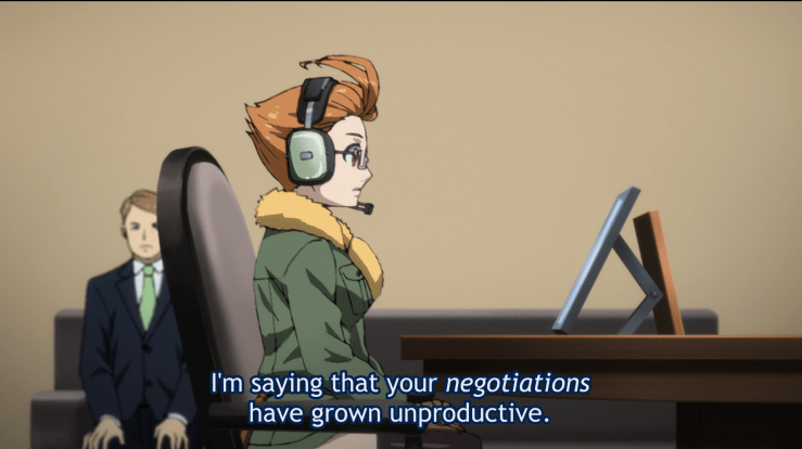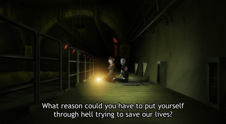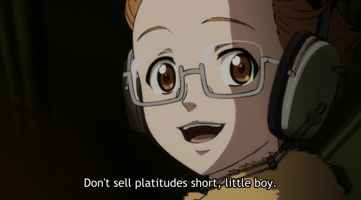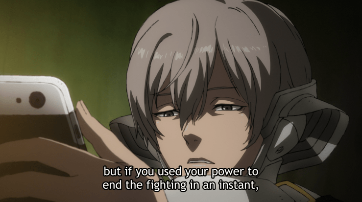 And yet, she seems to choose the most inefficient path towards her goal. Nezumi demands to know: Why not choose a more direct path? If you want peace, simply force those weaker than you to accept it. You’ll save time, energy, and even more lives.