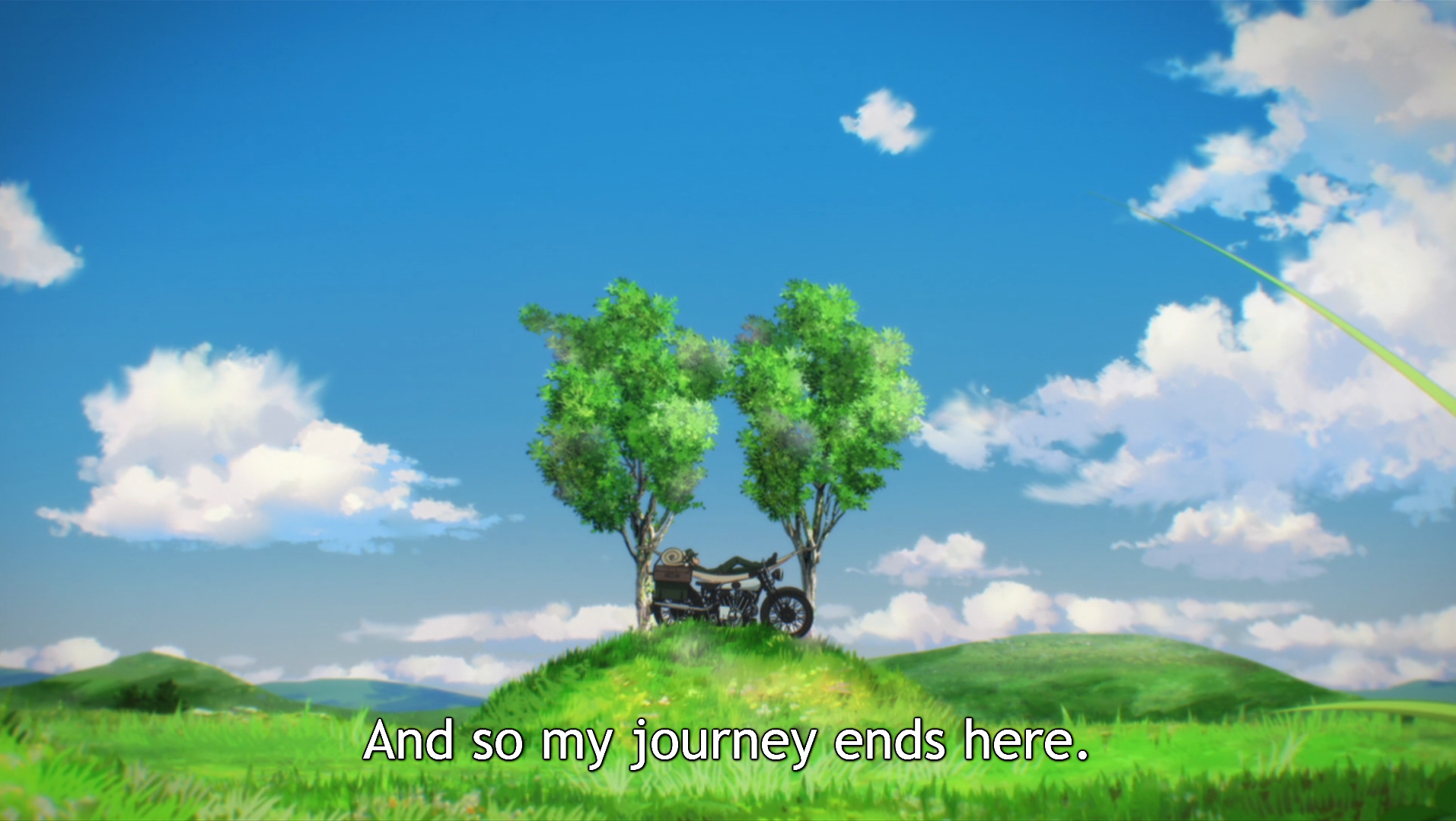 There are a lot of ways to define “life,” and framing it as a “journey” is a classic one. Maybe better than that, though, is how Kino seems to define it, as a series of journeys. She has ended one and is about to begin another.