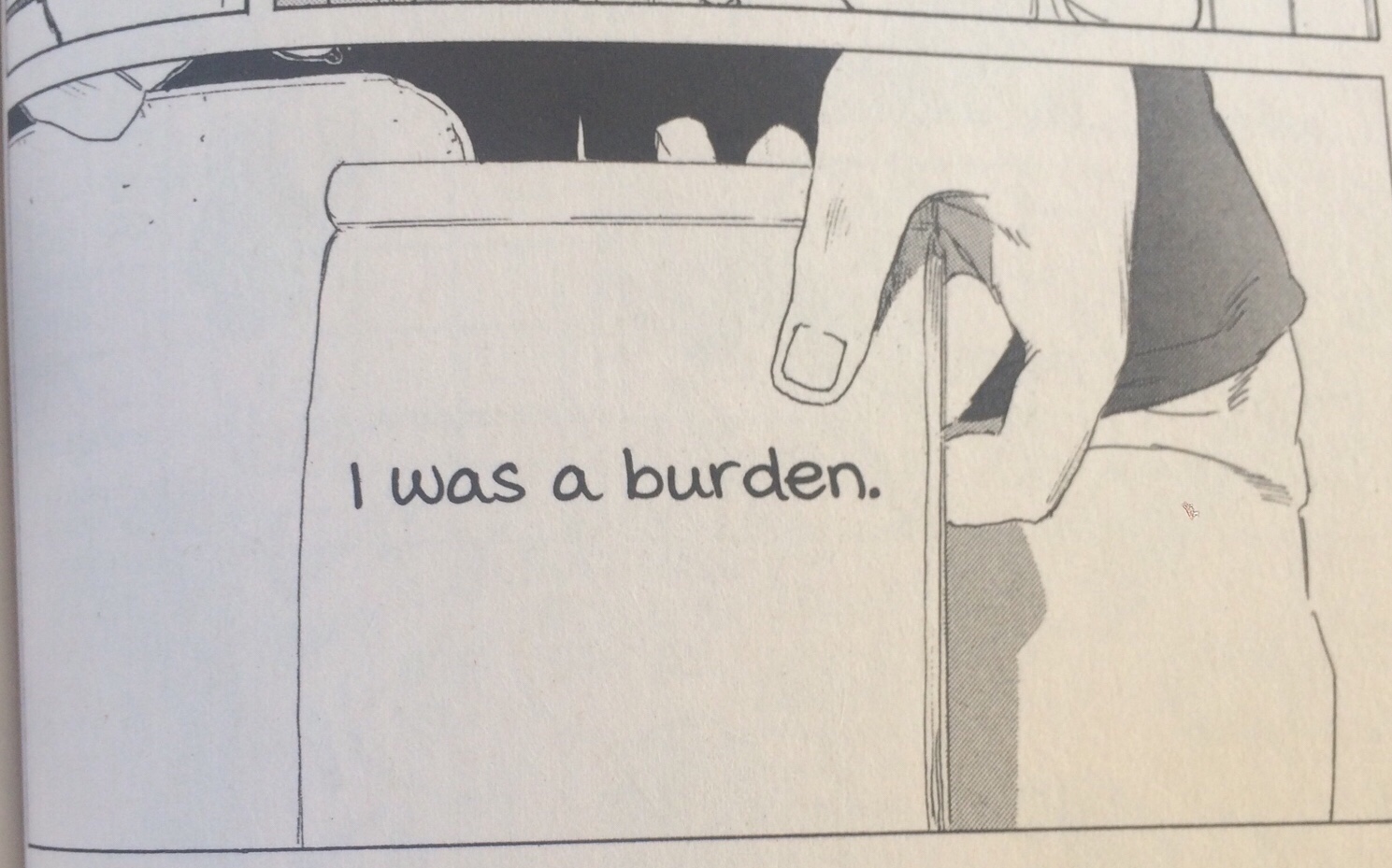 It’s hard to tell how serious Shouya is about wanting to kill his younger self. Those words obviously come out of the pain of guilt and regret, but if he were to follow through on the action it’s hard to sense if he would be doing it out of pain from his present or as a way to punish himself for his sins. Suicide in this sense is a form of redemption for him. I have the understanding that the culture in this manga is very much centered around the idea that a person’s life is just a collection of a pile of coals one heaps on themselves. Whoever ends with the least amount of coals “wins” and anyone with more coals then someone else is somehow less valuable as a person. The weight of the world is on everyone’s shoulders, and Shouya and his friends are desperately trying to find a way to relieve it. These are the monsters that Shouya is trying to defeat during the story.