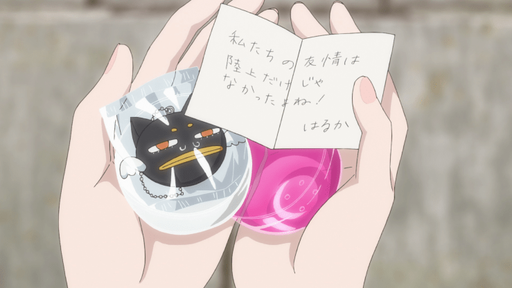 However, Haruka feels a weight on her brought on by the loss of intimacy with Akira, who remains kind of detached as she always has (though it should be noted that Akira does hide from the track team at one point). It’s Haruka, then, that really needs to work through her emotions and get to a point where she feels comfortable around Akira again, and where she can believe that the two can remain friends, despite their distance.