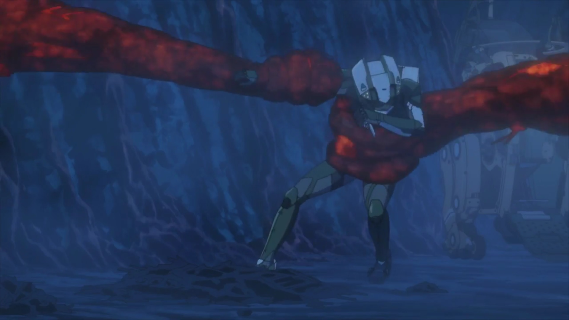A.I.C.O. Incarnation found itself on my watch list very late in the season.  Netflix is one of the last video streaming companies I look at—especially since they sometimes stream an anime after it’s aired.  One nice bonus with Netflix, though, is that it has interesting options for a lover of foreign tongues like me: I can stream an anime with a English, Japanese, German, French, Spanish, or Portuguese dubbing.  (That said, I still watch 95% of new anime in the original Japanese.)  Subbing purists may be horrified to learn that I gave the French dub of A.I.C.O. a try and loved it enough to watch the entire series in that mellifluous tongue.  Somehow, the anime of a biohazard threatening to destroy civilization and a girl trying to regain her lost family does not suffer from listening to the French dub—perhaps because the plot and setting diverged so sharply from stock anime plots.