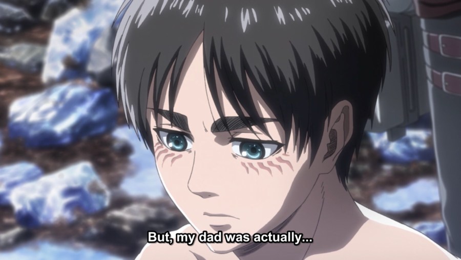But that only bothered me on a superficial level. I would have gone back to not really caring much either way for Eren next week, if it hadn’t been for his recent mistrust of his dad.