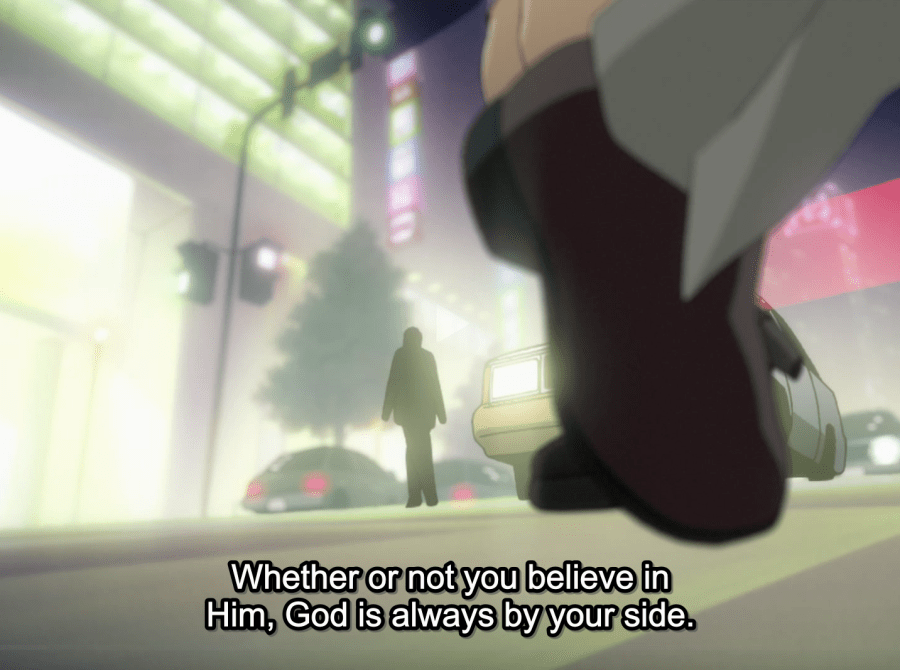 I think the argument can be made that God is truth, not just from a Christian perspective that teaches as much, but when trying to define “god” outside that structure. And while Eiri can do godlike things and has demonstrated certain truths of Lain’s world via his research and very existence on the Wired, he may not be the same as truth. And as proposed earlier, truth is just—if Eiri is not just, and it certainly doesn’t seem so, he may not be “truth” either.