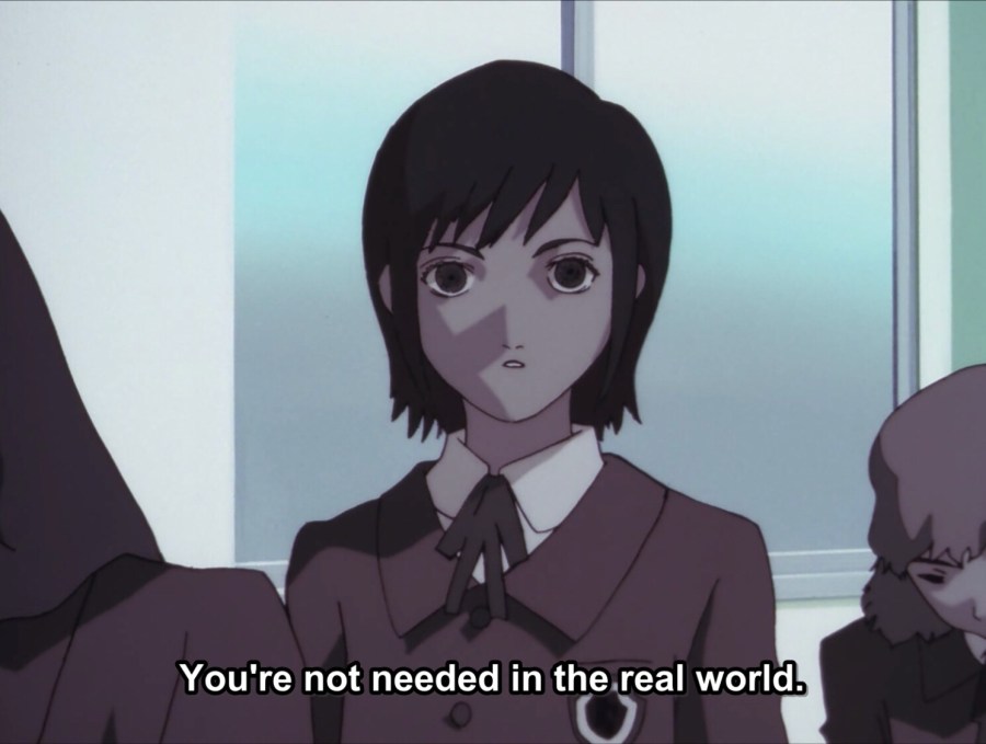 - Lain standing in the classroom, ignored, as if she doesn’t exist, seems like an effective way to break a young person if it was done intentionally, a terrible way to bully a child.