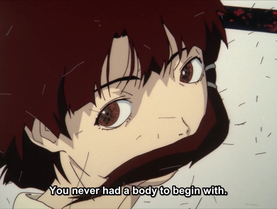 Lain is not human; she’s a tool. In fact, Serial Experiments Lain can be viewed as a story about artificial intelligence that explores what it means to be human. But unlike Metropolis or Time of Eve, the audience begins the series seeing the non-human as a person, before it’s slowly revealed that she is not. Lain demonstrates humanity through her weakness, her rage, her shortcomings, but even more so through her compassion and a desire to love and be loved. The love she receives from Alice and gives back shows her to be more than a homunculus.
