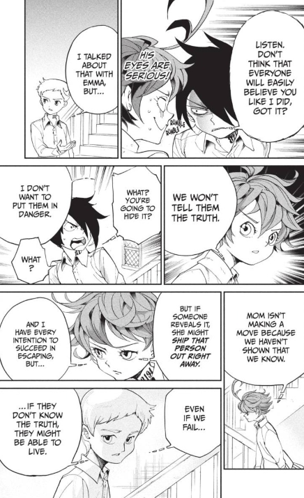 - It would have been nice if we did see the imagine spot that freaked Emma out in the manga, would make for good nightmare fuel.