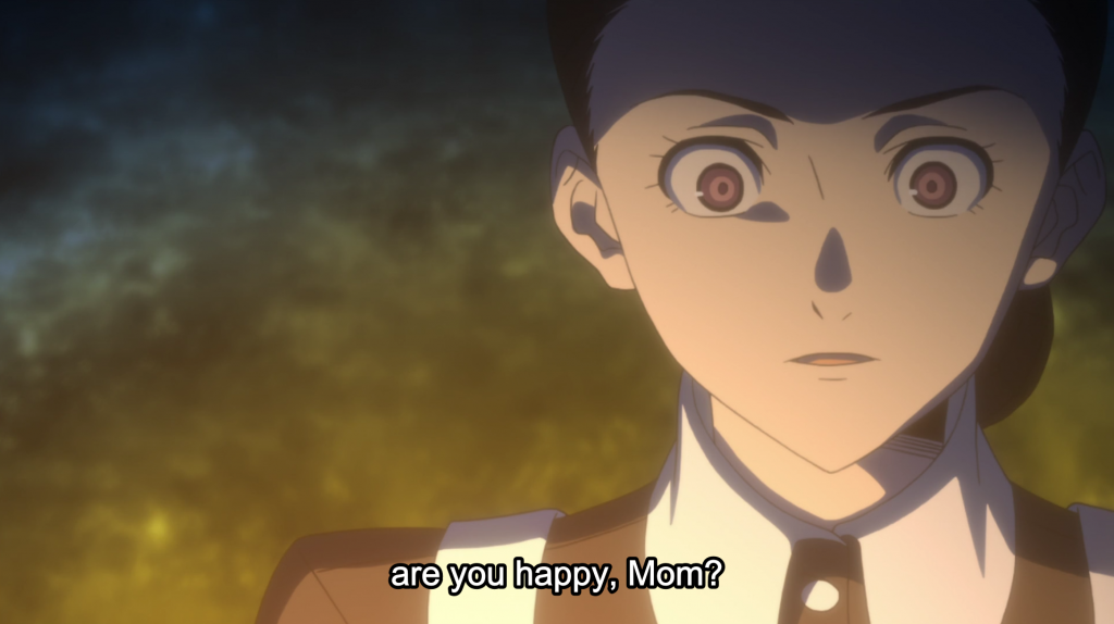 Either way, I do believe Norman is alive, which means that Isabella has another scheme going, whether for the good of the children or for her own good. The small flashbacks we see of her, both in the show proper and the ED, make me believe that she might be fighting back against Grandma, and so does a little piece of info she drops when trying to convince Emma to become a mother: all mothers and sisters, apparently, have children—this, too, could be a reason that Isabella is rebelling.