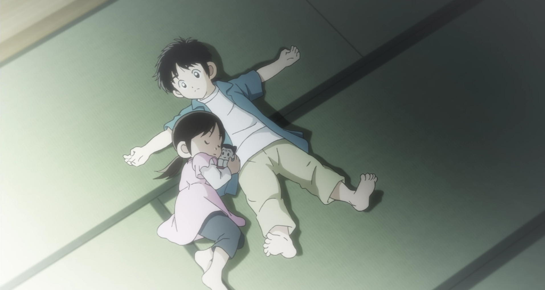 The montage of Otomi accepting Toma is so sweet and lovely. It helps hammer home how protective Soichiro is of her sister, while establishing how much Otomi means to Toma. His effort to get close to her is rewarded in a beautiful little scene where we awakes to find Otomi curled up next to him, holding the doll he had bought her. The tears in his eyes at being hurt are a nice contrast to his gruffer-but-still-heartfelt attitude toward her now that he’s older. And the comparison Toma makes to Punch, who only took a day to used to him, rather than the month it took Otomi, is like the hit that brought it all home.