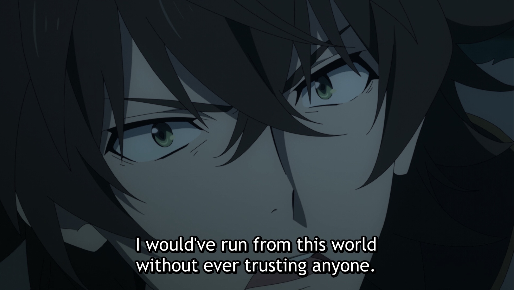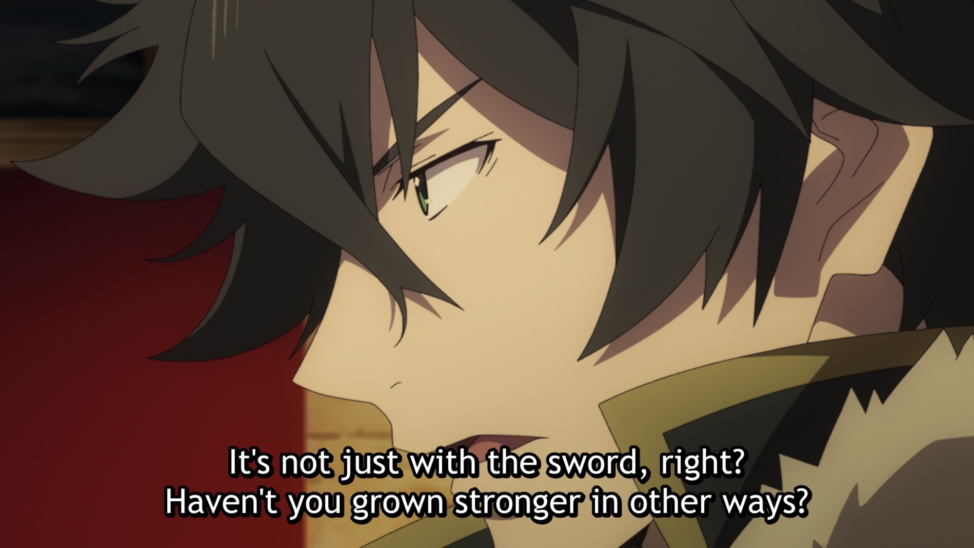 But the bits of kindness that dare to arise are too often shunted back by the hatred pressed upon him. When dueling Motoyasu, and suffering betrayal again, Naofumi falls back to a conclusion he has been embracing all along—he is alone in a world of people who will be betray him as they actively seek to destroy him. Of course, this is not entirely true. Naofumi has failed to take come critical information into account. He still believes he is on his own, but the real conclusion is this: Naofumi is not alone.