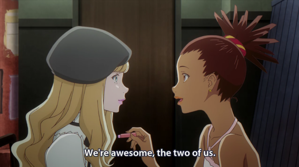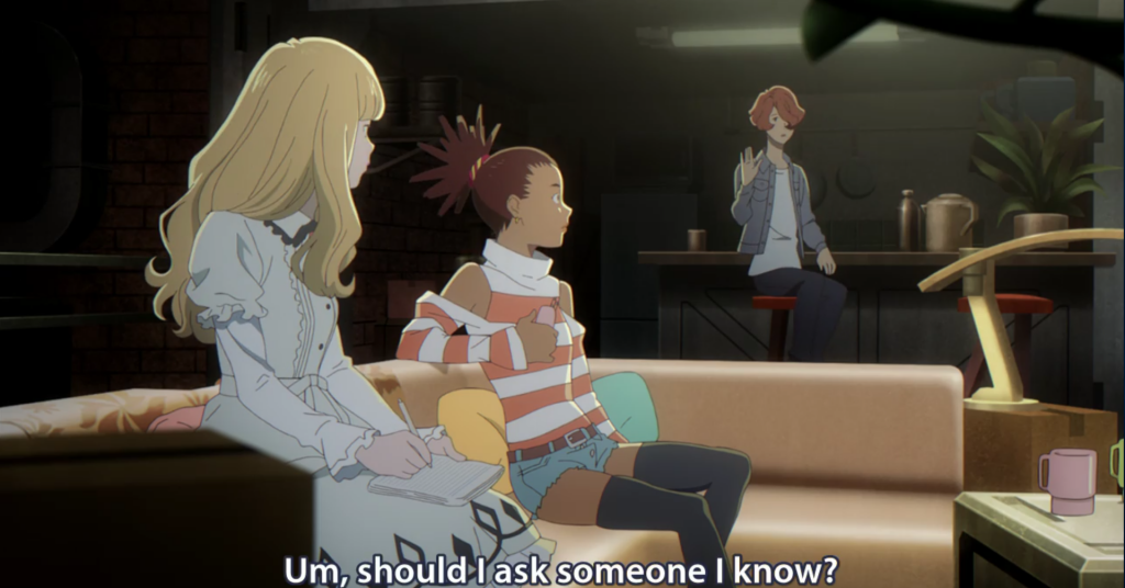 The same can describe Carole and Tuesday. The naivete with which they’re approaching their careers matches their youthful energy, and the shoddy plans which Gus uses matches his long drought in the industry. But like some throwback to fifty years ago, to a time when we believed just a bit in magic and innocence, that a happy ending can come true—and from episode one (2), Carole & Tuesday promises us a happy ending—the girls march toward a beautiful destiny, full of innocence and free from the mechanics of this future world.