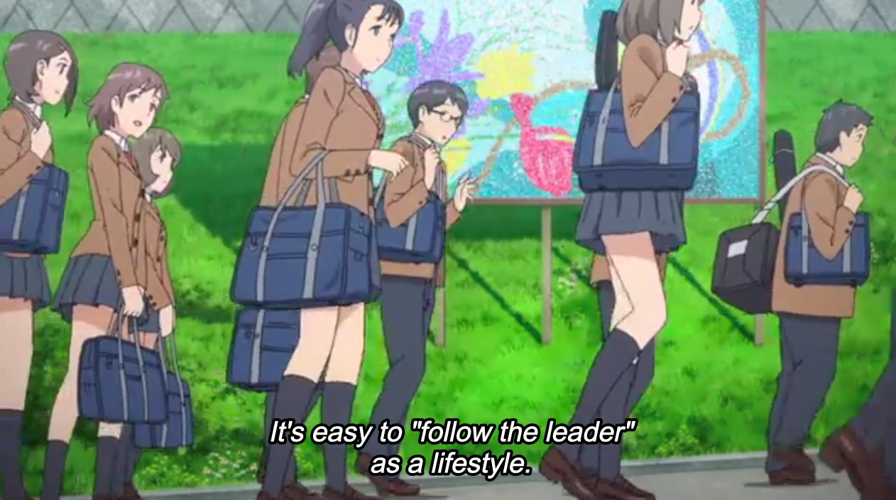 Azusagawa Sakuta began: “Once the class takes its shape, it doesn’t change easily. Others will talk behind your back if you stand out, calling you annoying or a show off. And once that happens, everyone knows that there’s no going back. That’s the kind of place a school is… Nobody can approach Sakurajima-senpai to talk to her. They don’t want to stand out, to be isolated. That’s why Sakurajima-senpai is also reading the situation, and pretending to act accordingly. Everyone says ‘I’m bored’ or ‘Isn’t there anything interesting out there?’ like pet phrases. But in reality, none of them are really looking for a change. The atmosphere is something you need to read. That ‘atmosphere’ that labels you as a bad person if you can’t read it.”
