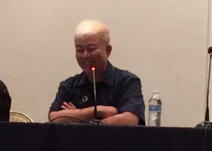 He starts off by saying how he’s actually been to America three times in the past, but this is his first time in California. His first impression is that the weather is really nice and it’s not humid like Japan is (haha it’s California after all). Every time he comes overseas for an event, he’s always really happy and excited for them, so he hopes this time will be the same and we can share in his happiness.