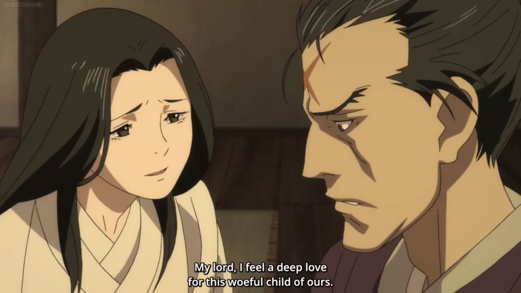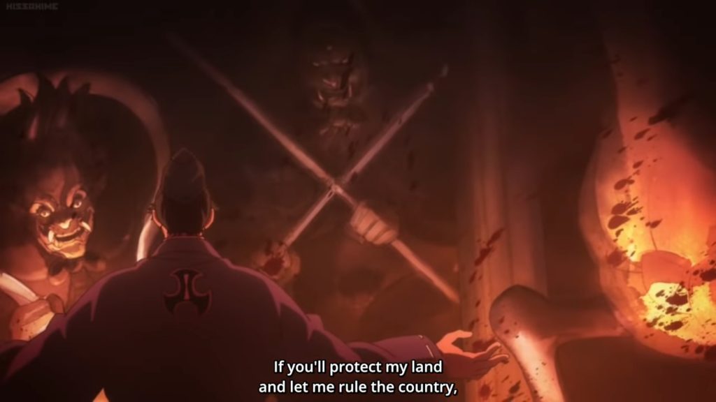 Yet, is the prosperity of Daigo actually a good thing? Perhaps it is a bad thing, because it is based on an evil thing. A good deed requires a good intention, a good means, and a good end for it to be really good. When Hyakkimaru’s father sacrificed his own son for power and prosperity, we know that his intent and means were corrupt and that his end held a great deal of selfishness no matter how he tries to package it in the present. Tahomaru is a little different in that we can discern a good intention and a good end, but the means—fratricide and sustaining a diabolic pact—are still evil.