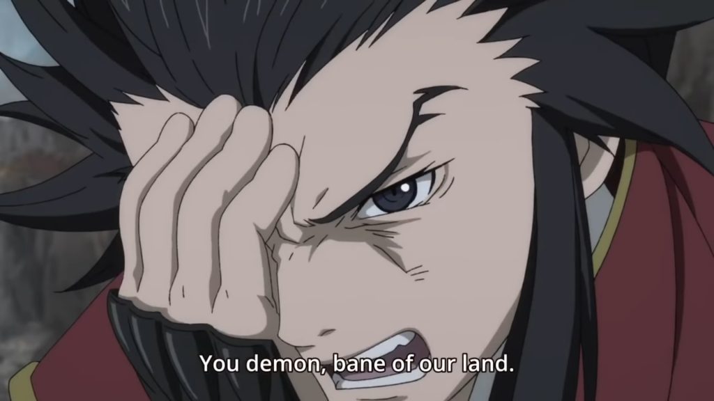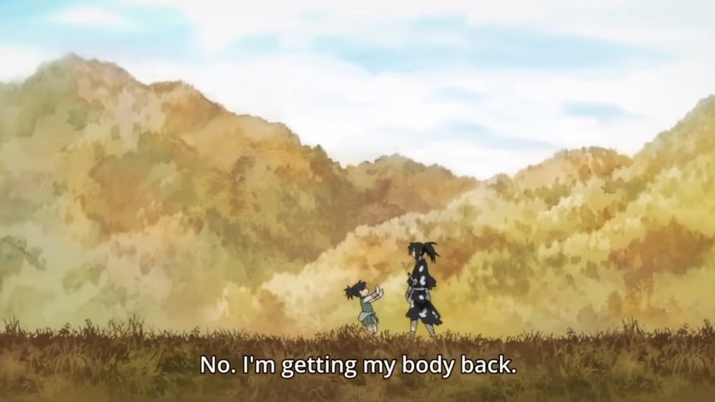 Despite Kyo’s former destructive existence, no one ever tries to convince him that his quest to regain his own body is morally wrong. We see the opposite in Dororo: many persons make Hyakkimaru out to be a villain for wanting to regain his rightful property. (And what can we consider rightfully ours if not our own body and soul, i.e. that which we are?) The heads of the Daigo clan argue on consequentialist and utilitarian grounds that the sacrifice of Hyakkimaru’s body to demons was essential to the prosperity of their fief. Each demon Hyakkimaru slays brings Daigo closer to ruin, and he needs to be stopped.